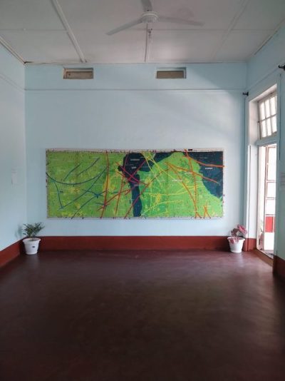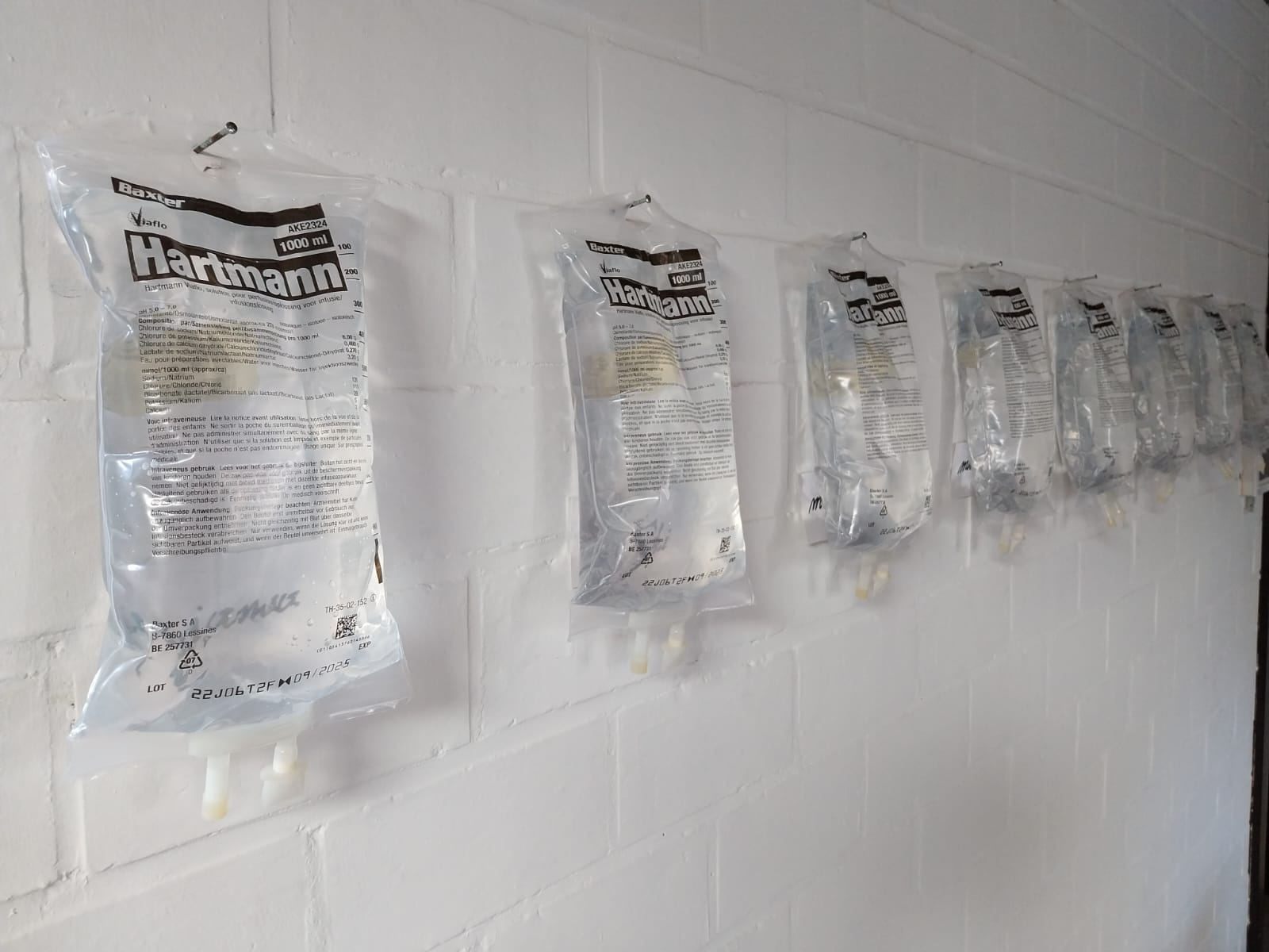 The work African Values, originally developed in the studio using IV bags, was reconstructed in Moshi with locally sourced materials. Instead of bags, plastic bottles were used—not arranged in a single line but distributed throughout the entire building. Through the bottles, African values written in Swahili are legible—values that came under pressure through the colonial past. Visitors had to literally search for these words in corridors, corners, and even sanitary spaces.